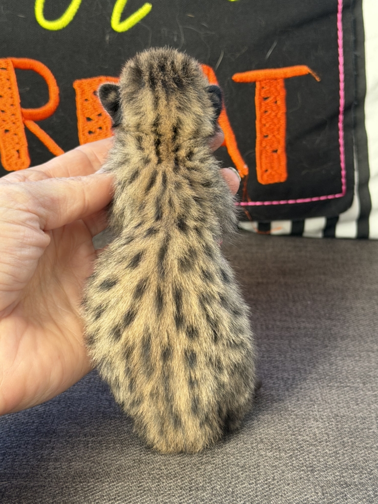 This boy is super flashy. Super gold coat and black nose. He definitely a copy paste from his serval father. Can’t wait to watch him grow.